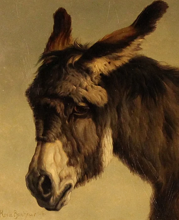 At the Paris Salon of 1841, Bonheur exhibited two paintings, Goats and Sheep and Rabbits Nibbling Carrots. Her reputation grew between 1841 and 1853 as she regularly exhibited animal paintings and sculptures. Bonheur won third prize at the Salon in 1845, and a gold medal in 1848. Her status was firmly established at the 1849 Salon with the painting Plowing in Nivernais, which had been commissioned by the French government. Toward the end of her career, Bonheur’s palette became lighter, her animals more defined, and her finish highly polished and perfected.